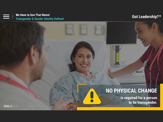 Getting to know your patients, including aspects of their sexual and gender identity, behavior, and desires is key to providing quality care. It is important that you respect a person’s privacy and how much of their private life and decision to transition they want to share with others.